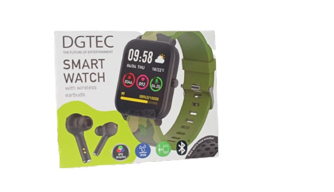 Control your music through the watch and listen to music on the go with the wireless earbuds. Receive alerts for notifications to your watch, monitor your heart rate and select from the 14 preset sport modes with the 1.7”IPS colour touch screen.