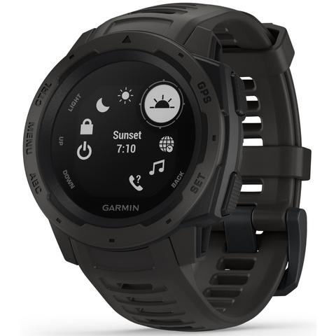 When you can rely on Instinct, the world can rely on you. This rugged, reliable outdoor GPS watch is built for thermal, shock and water resistance (rated to 100 meters). The fiber-reinforced polymer case adds strength and durability, and the chemically-strengthened, scratch-resistant display is high-contrast enough to read in bright sunlight, so you can take it with you into the extremes you face every day. Plus, the fully vented silicone bands include two independent, removable keeper loops to ensure a secure fit and to keep you from getting caught on things.