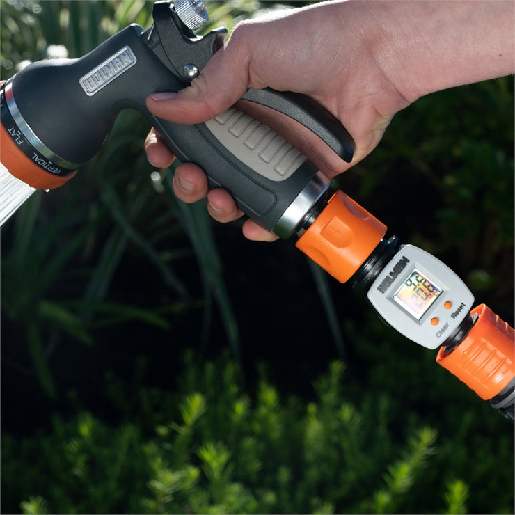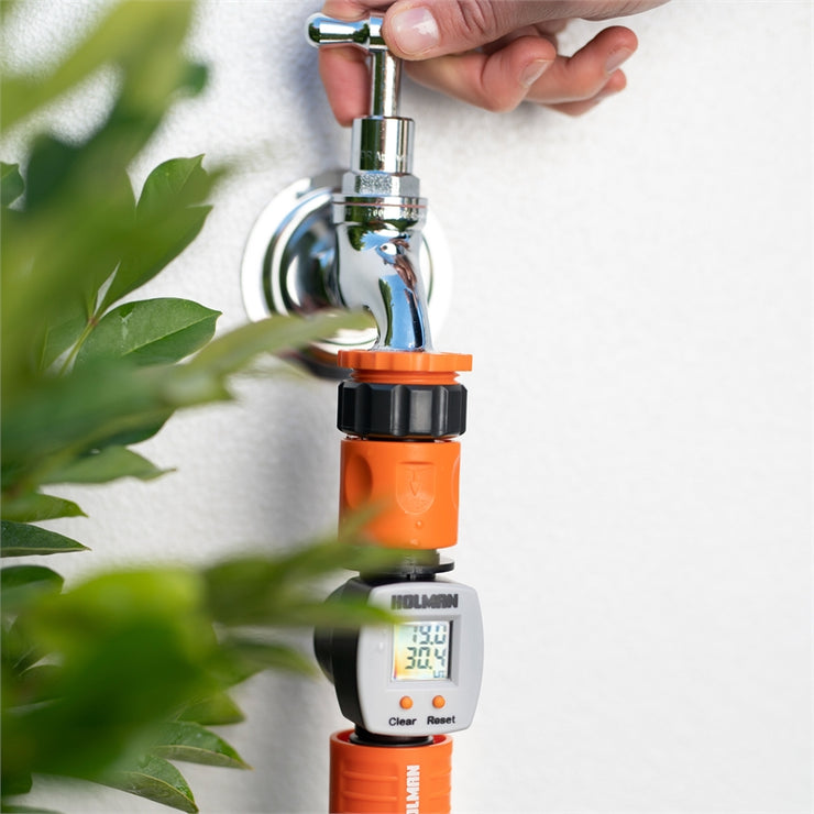 Know exactly how much water you are using in different parts of your garden by using this Flow Meter Counter. Measure the accumulated water usage within a period of time (bottom numbers) as well as the amount of water used for the current watering session (top number). Tailor your water saving based on how much water you are using. The Flow Meter is also useful for monitoring water usage from a rainwater tank. Click straight onto the tap or directly under your hose gun, if you prefer to monitor the water usage as you water. Easily reset either top or bottom counter using the Clear or Reset buttons. The accuracy of measurement will depend on the water pressure and the volume passing through the counter.