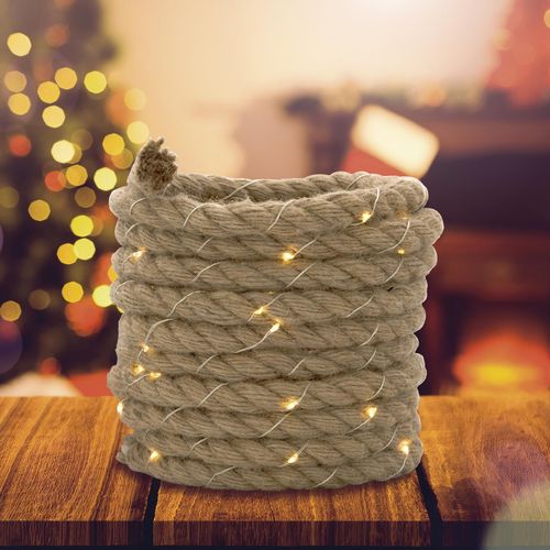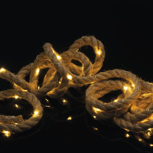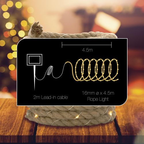 This solar-powered Arlec 4.5m Natural Rope Lights Solar features natural rope.