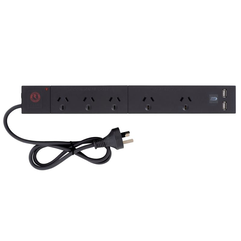Arlec's 5 Outlet Surge Powerboard with USB Charger includes an LED surge indicator, 2 USB charging ports, 2 wide space outlet, perfect for all your modern appliances.