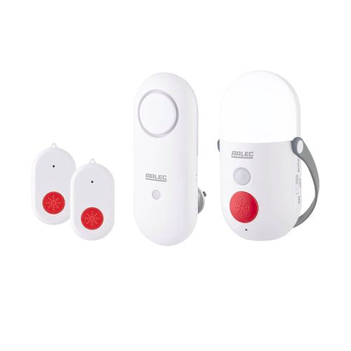 The package includes a plug in 240V nightlight that acts as a gateway to the sub devices and provides lighting and audio alarms when someone triggers any of the assist buttons. The included battery-operated nightlight provides night-time lighting and PIR motion sensing. The device also has an assist button to trigger alarms.