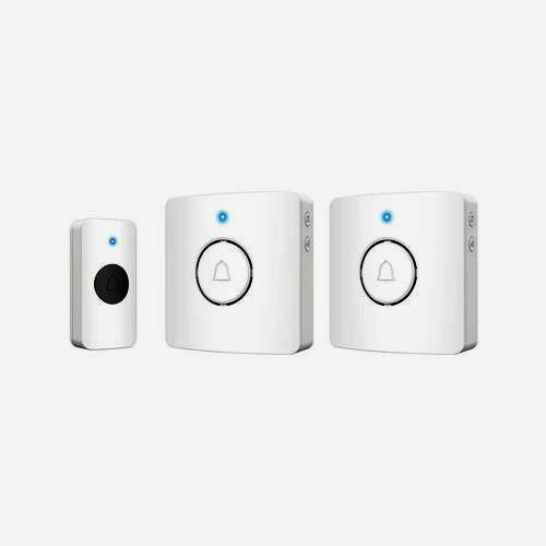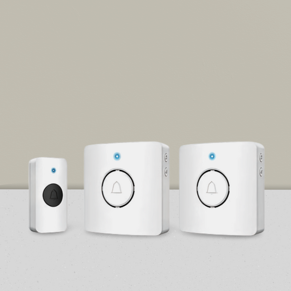 - Consists of door push button (transmitter) and 2 battery powered chime units (receivers)