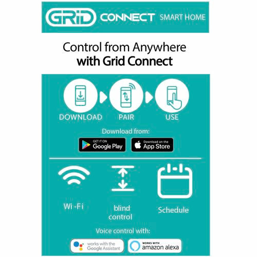This product is compatible with the Grid Connect smart home automation system, built to optimise your everyday living. Simply download the free Grid Connect app on your iOS or Android device and use your home Wi-Fi or mobile internet connection to control, customise and automate your product. It takes only minutes to set up, and there’s a wide range of products available that allow you to customise your system any way you like. Use the app to create the perfect light for every moment of the day, set your product to operate on your ideal schedule, and enjoy peace of mind while you’re away. Most Grid Connect products are compatible with Google Assistant and Amazon Alexa (sold separately), so you can operate your system with the ultimate convenience.