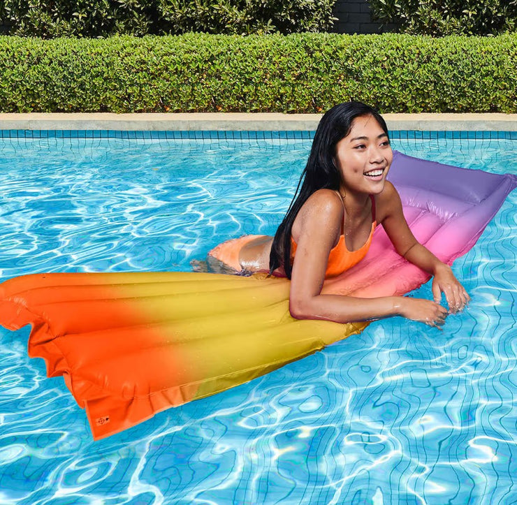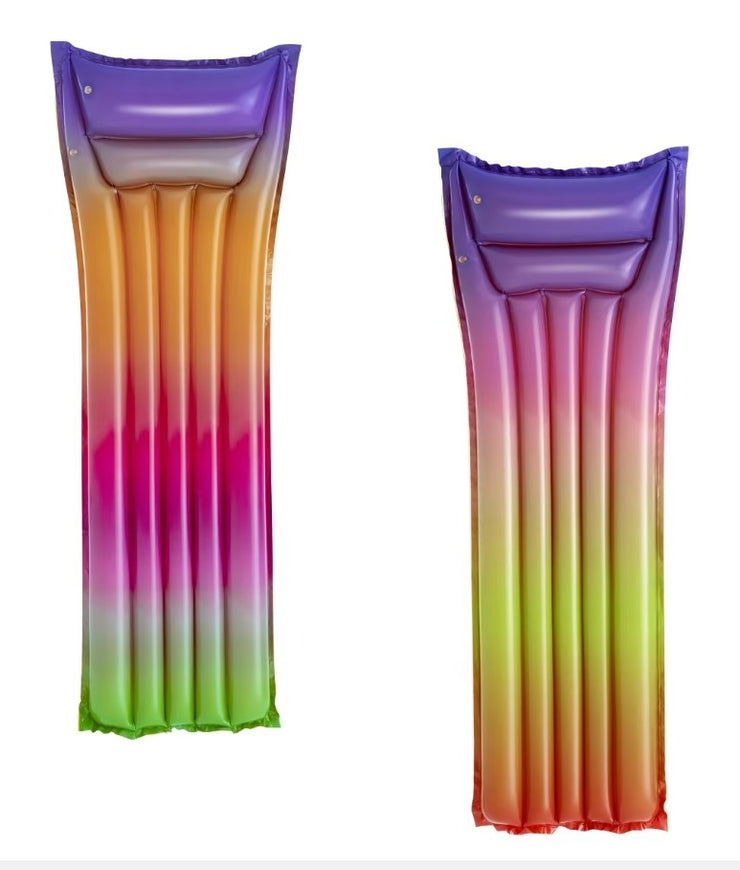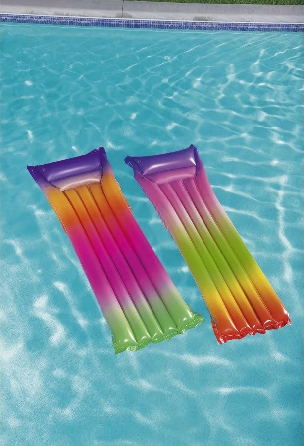 With float in style with the eye-catching rainbow pool mattress, you can enjoy hours of fun during the hot summer.