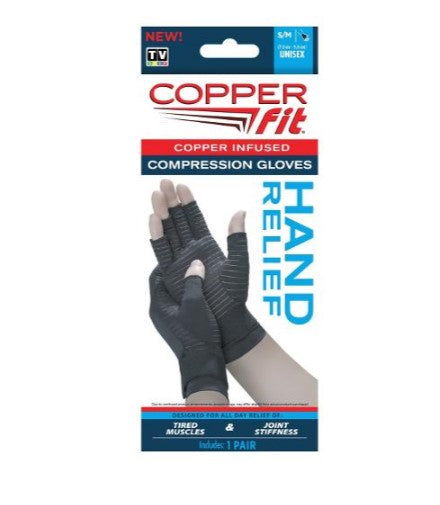 Copper Fit Compression Gloves are designed to support muscles and joints and help relieve stiffness and soreness in your wrist, palms and fingers! Form fitting like a second layer of skin, these gloves have adjustable compression and an open finger design for easier control while on.