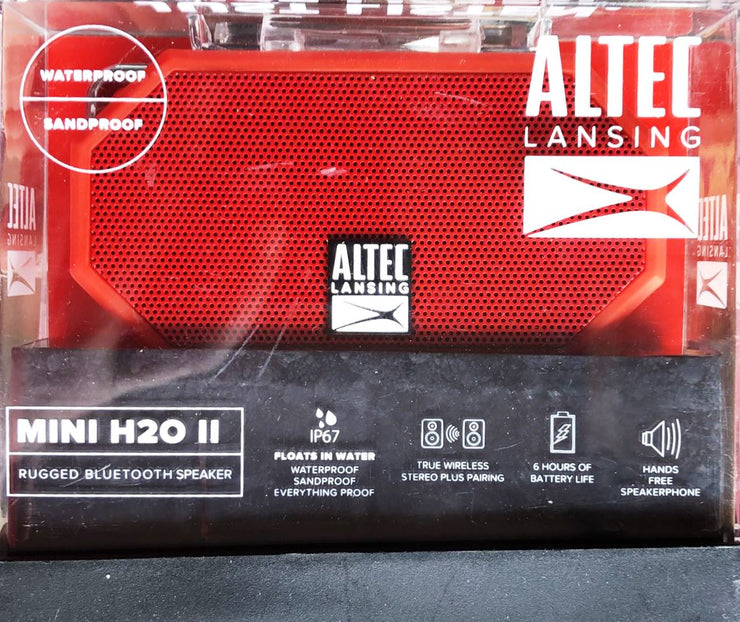 The Altec Lansing iMW257 Mini H2O Bluetooth Speaker features an ultra compact design, voice confirmation and an on-board microphone for clear, hands-free communication. The rugged Mini H2O is IP67 waterproof, dustproof, snowproof rated and it FLOATS! With 6 hours of battery life, aux-in port and an integrated carabineer the Mini H2O will take the music wherever you want to go.