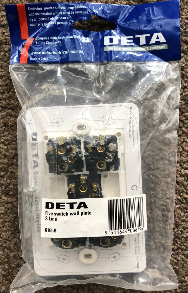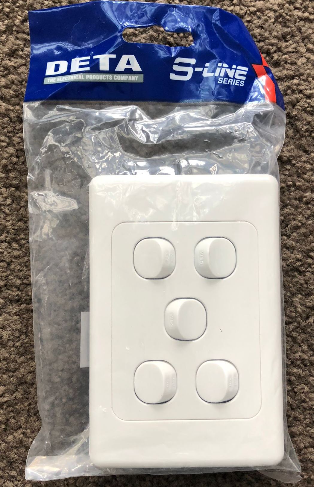 DETA S-Line Five Switch is fitted with five switch mechanism, and features an ultra-low profile modern made from hard- wearing polycarbonate.