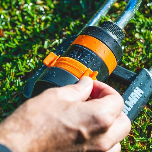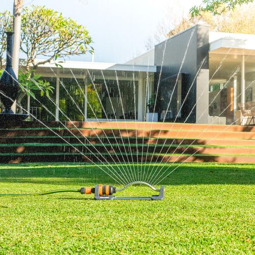 The sprinkler is equipped with two adjustment levers (left & right), which can be adjusted independently between the maximum 90-degree angle to suit the lawn area. This allows you to water up to an edge. The centre spray pattern feature is great for median strips or narrow lawns, with the flexibility of this oscillating sprinkler, watering has never been so EASY!
