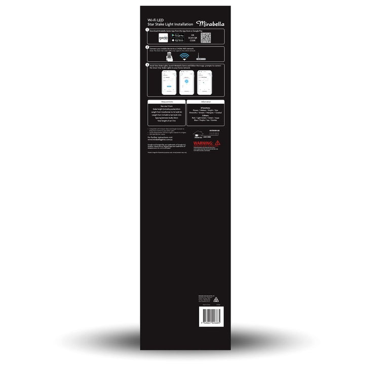 Light up your garden with the Mirabella Christmas Genio Wi-Fi 6 LED Colour Select Star Stake light set. Control these lights with the Mirabella Genio App on your Smart Phone. Mirabella Genio App available from the App Store or Google Play. Works with Google Home & Amazon Alexa. You can schedule these lights to turn on or off and adjust the appearance as desired. Select from different 7 colours and 8 special light functions.