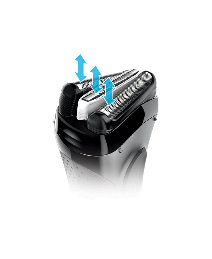 The Braun Series 3 ProSkin rechargeable electric foil shaver/razor provides faster shaving with great skin comfort*. The 3 pressure-sensitive shaving elements adapt to every facial contour and the specialised Micro Grip capture more hairs in the first stroke*.