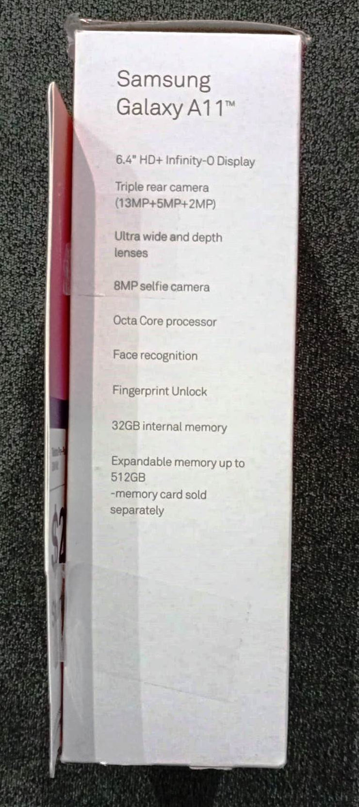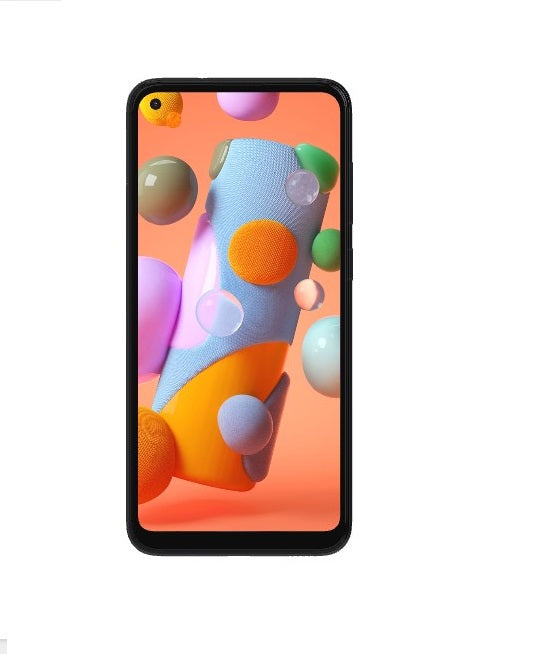 Samsung Galaxy A11 Mobile Phone symmetrically PLS LCD 6.4" Display for a real-to-life colour in everything you watch and do—from gaming and movies to web-surfing and multitasking. Start enjoying more of what you love, without the screen getting in your way. With its smooth, elegant curved-edge screen design, Galaxy A11 is beautiful to look at and fits comfortably in your hand. Its premium gloss finish makes it easy to hold, and the rhythmical pattern adds a unique touch of personality.
