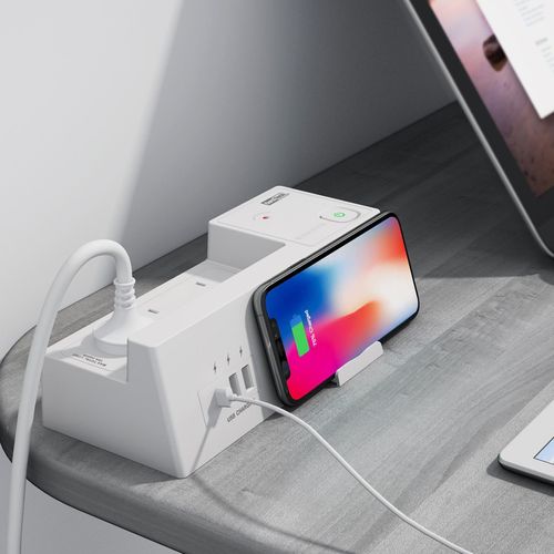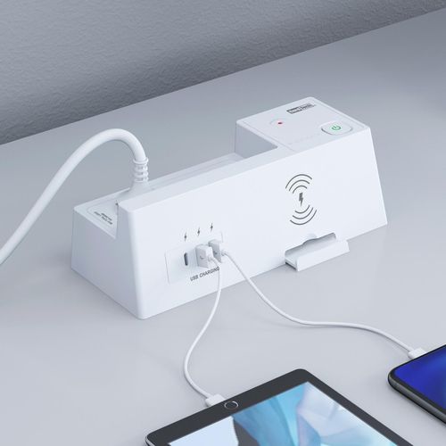 This is a full featured desktop power solution offering 3 x power outlets, USB charging (A+C) and 10W Wireless charging. The convenient pull-out device tray is a fantastic tool for placing your device during wireless charging or while watching content online.