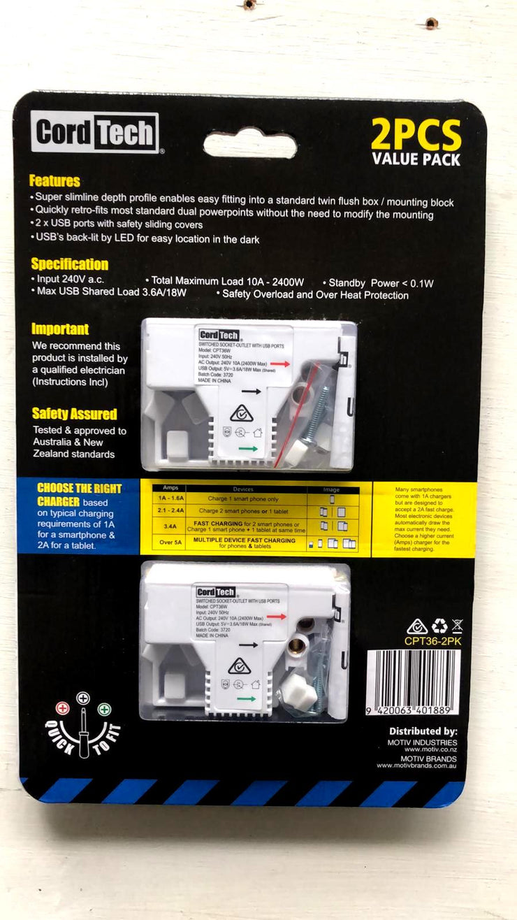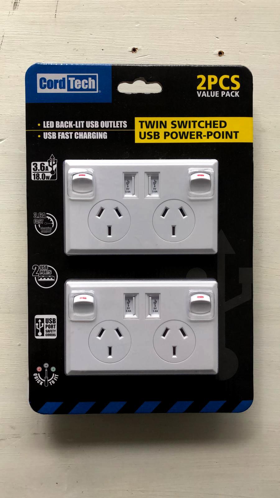 • Product: Twin Switched USB Powerpoint- 2 pack