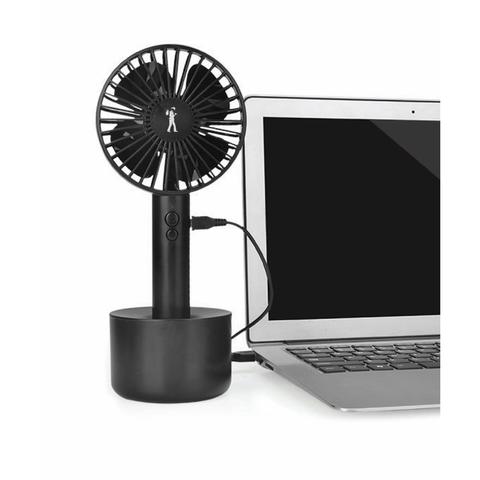 A 3-speed personal breeze that can be used as a desk fan in its oscillating holder or portable handheld with its rechargeable battery. Ideal for those personal summers!