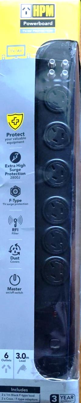 With extra high surge protection and TV sockets, this powerboard is ideal for use behind your TV and stereo equipment.