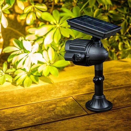 The 2 adjustable side light heads works to broaden the lighting angle. The spotlight can also be used to create a wall wash lighting effect on the house exterior for the accent lighting purpose. With the built-in solar panel that automatically charges the built-in battery with exposure to sunlight during the day, the product will turn on its light automatically at dusk, ideal to illuminate and decorate your house exterior, pathway and garden.