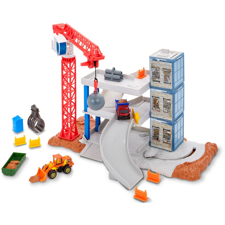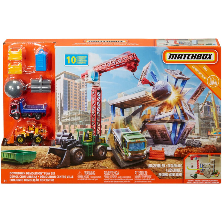 Real world inspired action sets ignite kids imagination and storytelling! Knock the entire building down and rebuild it to look brand new with the Matchbox Downtown Demolition Playset.