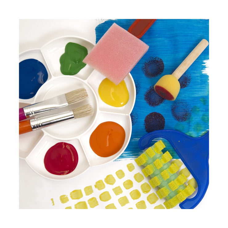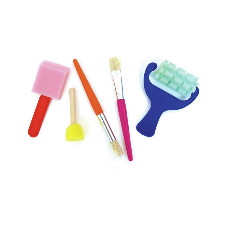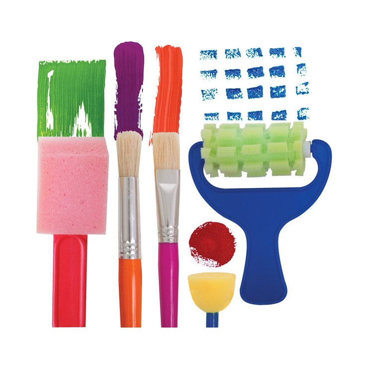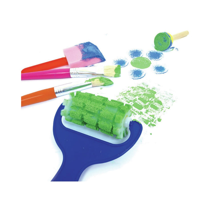 - Includes:2 colourfun brushes, 1 pattern foam roller, 1 foam brush and 1 round stamper