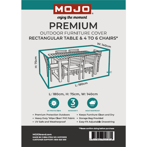 - Model Name: MOJO Premium Outdoor Furniture Cover - Rectangular Table and 4-6 Chairs