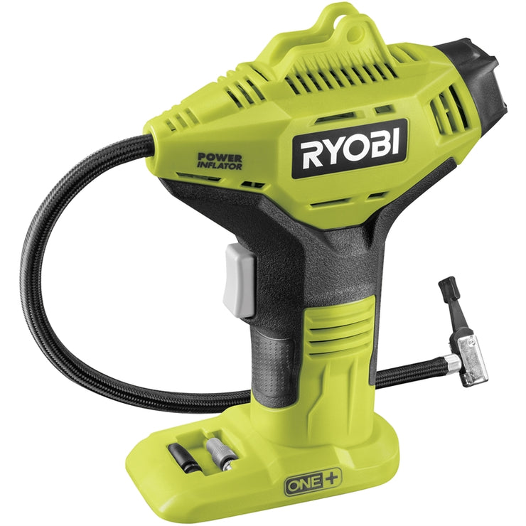 The RYOBI 18V ONE+ Digital Pressure Inflator inflates tyres, sporting equipment and other inflatable items quickly with its wide-diameter piston. The 35mm digital pressure gauge displays accurate PSI and BAR readings, helping you get the air pressure just right. Its cordless design makes it convenient to use anywhere, from the driveway to a campsite. A storage clip keeps the 50cm hose secure during transport and storage, while an on-board compartment holds the included 2 high-pressure nozzles and sports equipment needle.