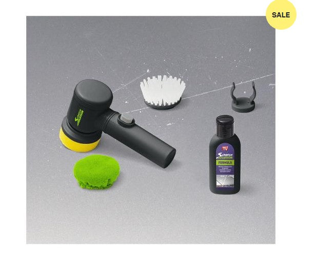 Scratch Solution is the unique scratch repair system, specially formulated to reduce surface scratches, scrapes and scuff marks from the paint work of vehicles! Simply apply the Scratch Solution formula to the applicator, turn it on, and go over the scratch. The applicator's super-fast rotations generate heat and activate the millions of micro particles in formula that go deep into the scratch. In just seconds, the scratches reduce right before your eyes, leaving a superb high gloss finish! Scratch Solution works on any colour, most paints, and virtually any vehicle. You can even bring back the shine on your cars faded paintwork or weathered headlights.