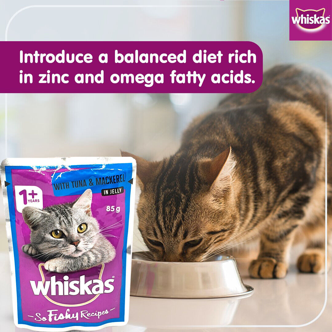At the WHISKAS brand, they understand what your cat naturally needs, that's why every pouch is 100% complete and balanced with quality fish for a delicious taste and texture that your cat will love. Providing 100% of your Cat's daily nutrition.